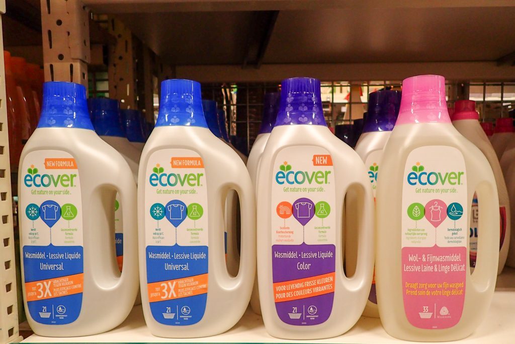 まずおおまかに通常の洗剤、前洗い用の洗剤、おしゃれ着用の洗剤に分かれています。通常の洗剤は黒、色物、白など専用のものがありますが、全般に使えるものもあります。黒や色物専用の洗剤は、発色をよくさせる効果があります。同様に白用の洗剤はグレーになるのを防ぎ、より白くさせる効果があるようです。洗剤によっては匂いがきつかったりしますが、最近日本でも取り扱いがあるエコベールはベルギー生まれのエコ洗剤で匂いもきつくなく、日本人にとっては使いやすいと思います。
