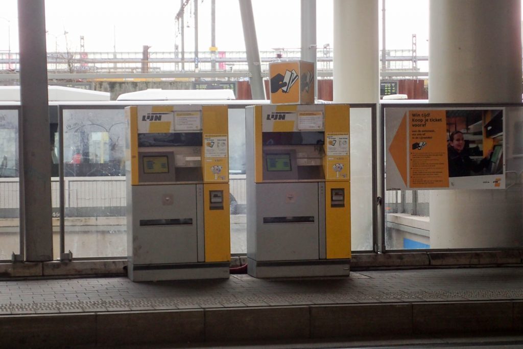 年中無休ですが、しばしば壊れていて使えないことがあります。おつりが出てこないこともたまにあります。慣れていない人は、対人のLijnwinkelもしくはセールスポイントを使うことをオススメします。写真のグレーの小さな自動販売機は1回券専用で、小銭のみ使用可能です。