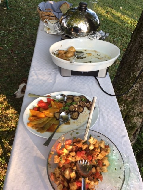 ドイツのポテトサラダは日本のものと違い、潰さないで茹でて皮を剥き、スライスして作ります。おいしく作るコツは茹でたてのじゃがいもの皮をすぐに剥くことだそうですが、熱いのが苦手な私はいまだにうまく作れません。