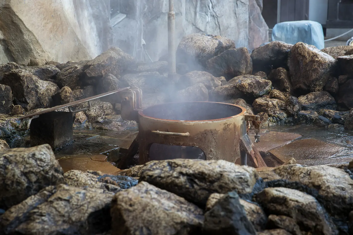 穴間と呼ばれる海岸です。もちろんいくつかの民家もあります。ここまで来ると函館山のほぼ裏側になります。岩肌がむき出しになっている部分は、江戸幕府が、ロシアなどの外国船の出没に備えて築いた弁天台場や、五稜郭の石垣を製造するために切り出された跡です。さらに岩場や洞窟を抜けて奥に進むとこのような光景が。