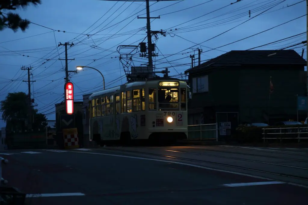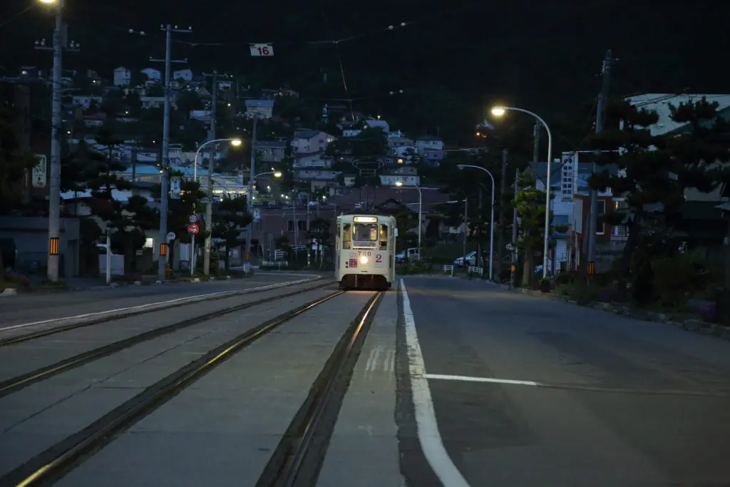 住吉漁港から10分ほど函館山に向かって歩くと市電の線路があります。市電もロケに良く使用されますが、特に好まれているのが、「青柳町」電停付近です。