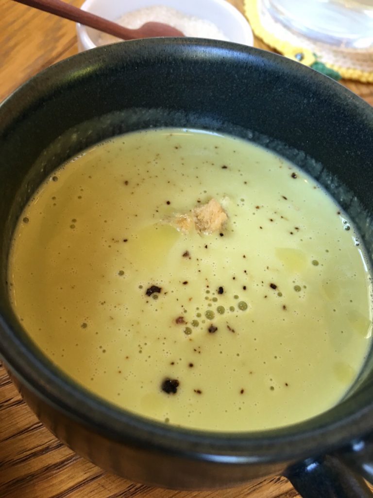 まずは、すべてのセットについてくるスープ。この日はグリーンピースのスープです。お豆の味が濃厚です。パリなどで修行を積んだ葭谷真輝(よしやまさき)氏がシェフを務めるだけあります。ただのオシャレなカフェではないことがわかります。