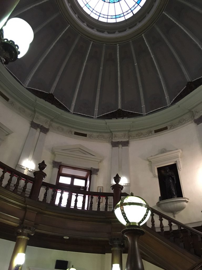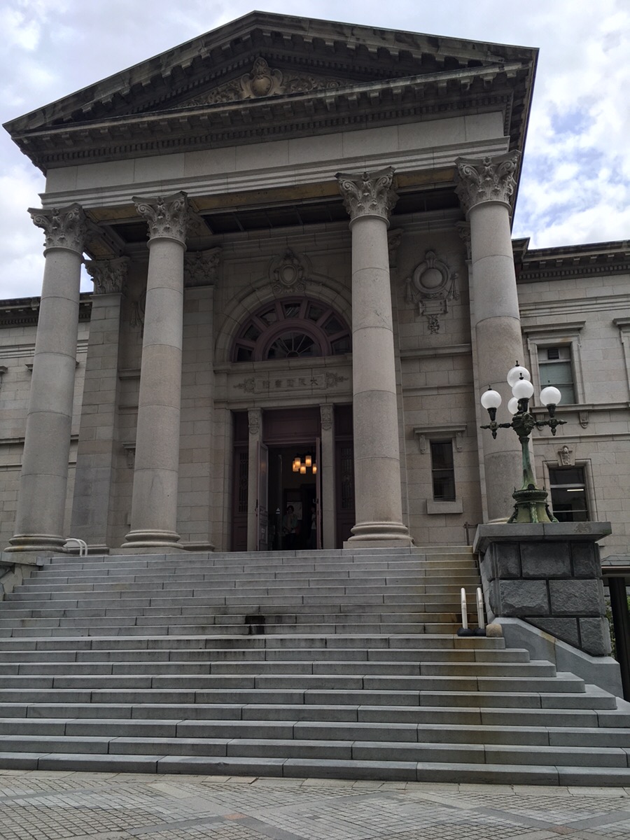 このネオ・バロック様式の建物は、住友家の寄付により明治時代に建てられたもの。今では国の重要文化財に指定されている貴重な建物なんです。2015年4月に改修が完了し、営業を再開しています。内部中央ホールのドームにはステンドグラスが。まるでギリシャ神殿のようですね。