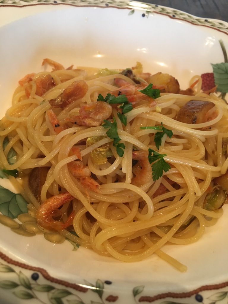 オーダーしたのは、オイルベースの春キャベツと桜エビのスパゲティ。春らしい季節感のあるパスタです。