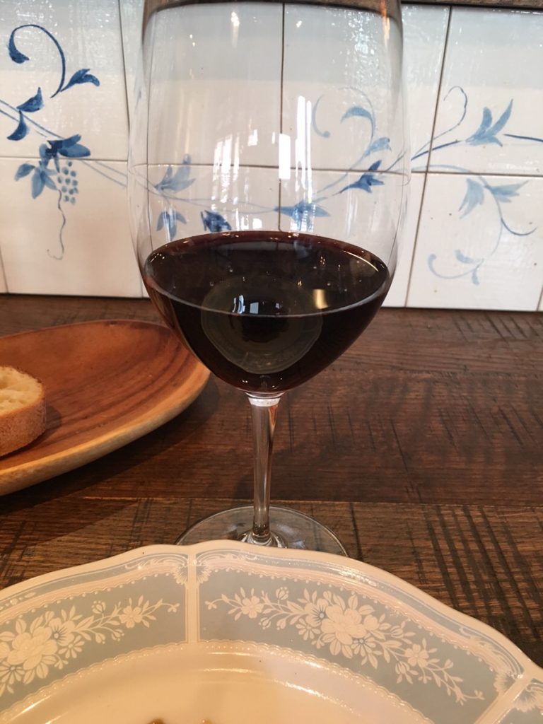 メインはお肉料理とのことで、赤のグラスワイン(800円)をいただいました。