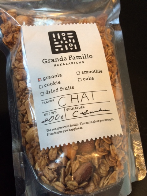 チャイをテイクアウトしてみました。ペカンナッツやピーナッツなどのナッツがゴロゴロと入っています。市販のグラノーラとの違いです。甘みは極力抑えてあり、体の中から健康になれる気がします。忙しい朝にもぴったりですね。手土産やご進物にもいかがでしょうか。