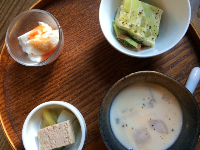 左上はかぶらのムース。ふわふわの食感ですが、しっかりとした味付けです。