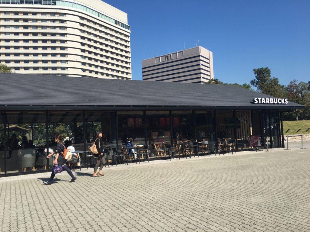 大阪城ホール側にあるA Terraceは丸ごと、おなじみスターバックスコーヒーの大阪城公園店になっています。広い店舗で、一面ガラス張りのオープンでゆったりしたな雰囲気です。