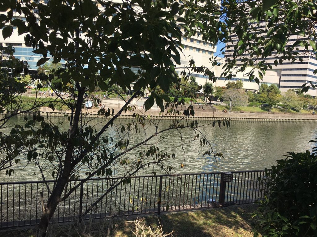 裏手には川が流れていて、ニューオータニなどOBPのビル群を眺めることができます。