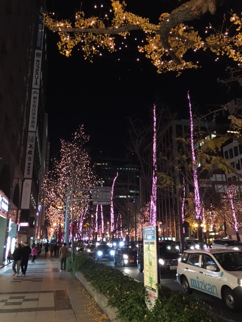 御堂筋もライトアップされ、人々の目を楽しませています。