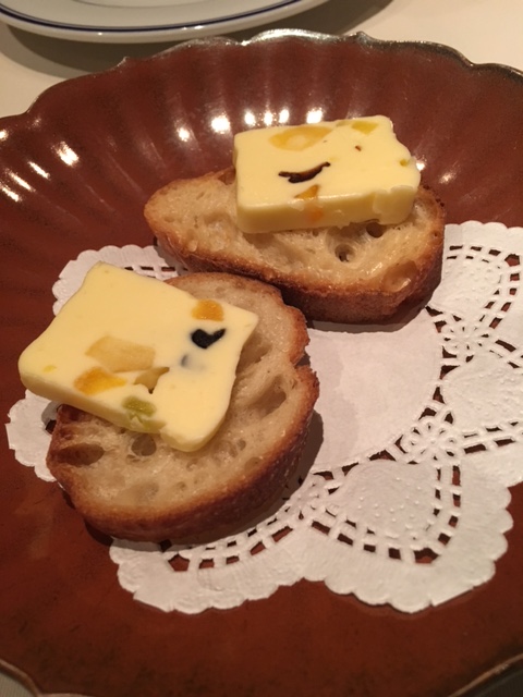 レーズンバターの豪華版ですね、ドライフルーツバターのカナッペ。バターがとてもあっさりしていてマイルドです。たくさんいただいても、胃にもたれることがなさそうな綺麗なバターです。