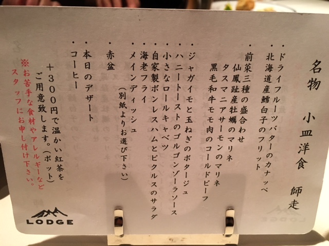 コースは宴会洋食(4000円)と小皿洋食(4500円)の2種類