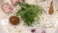 キャベツのカレー炒め、赤玉ねぎのピクルス、大豆のピクルス、そして何か味噌のようなものが添えられています。