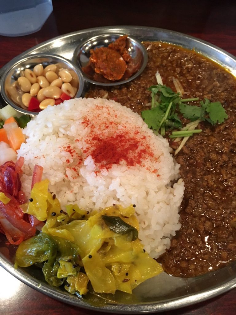 ひよこ豆入り豚肉のキーマカリー(830円)をオーダーしました。