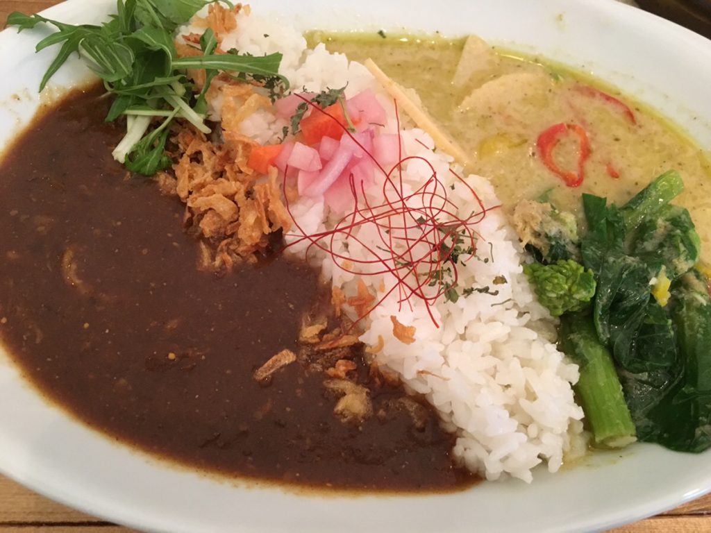 牛すじGとグリーンカレーのあいがけ(1000円)をいただきました。